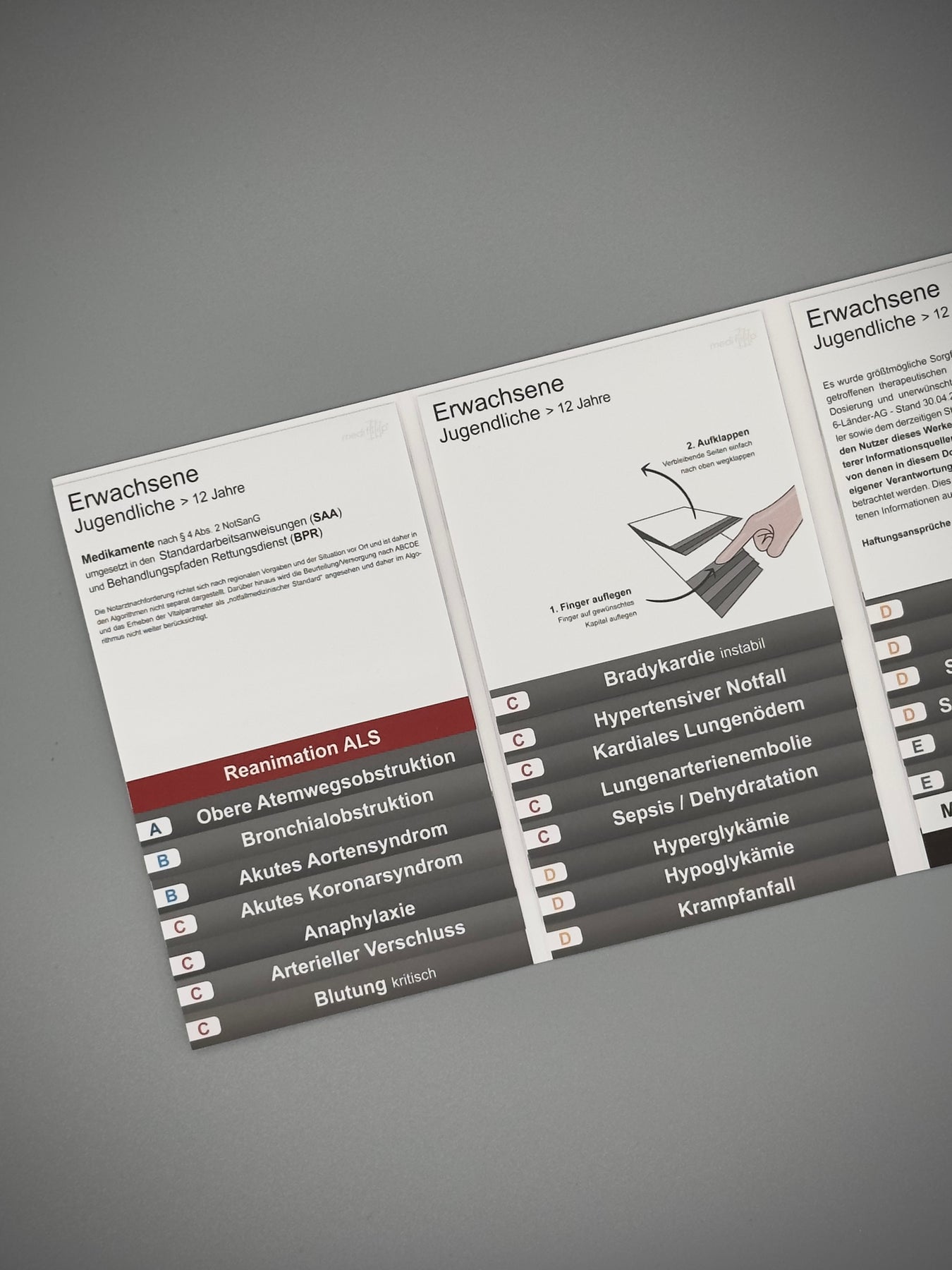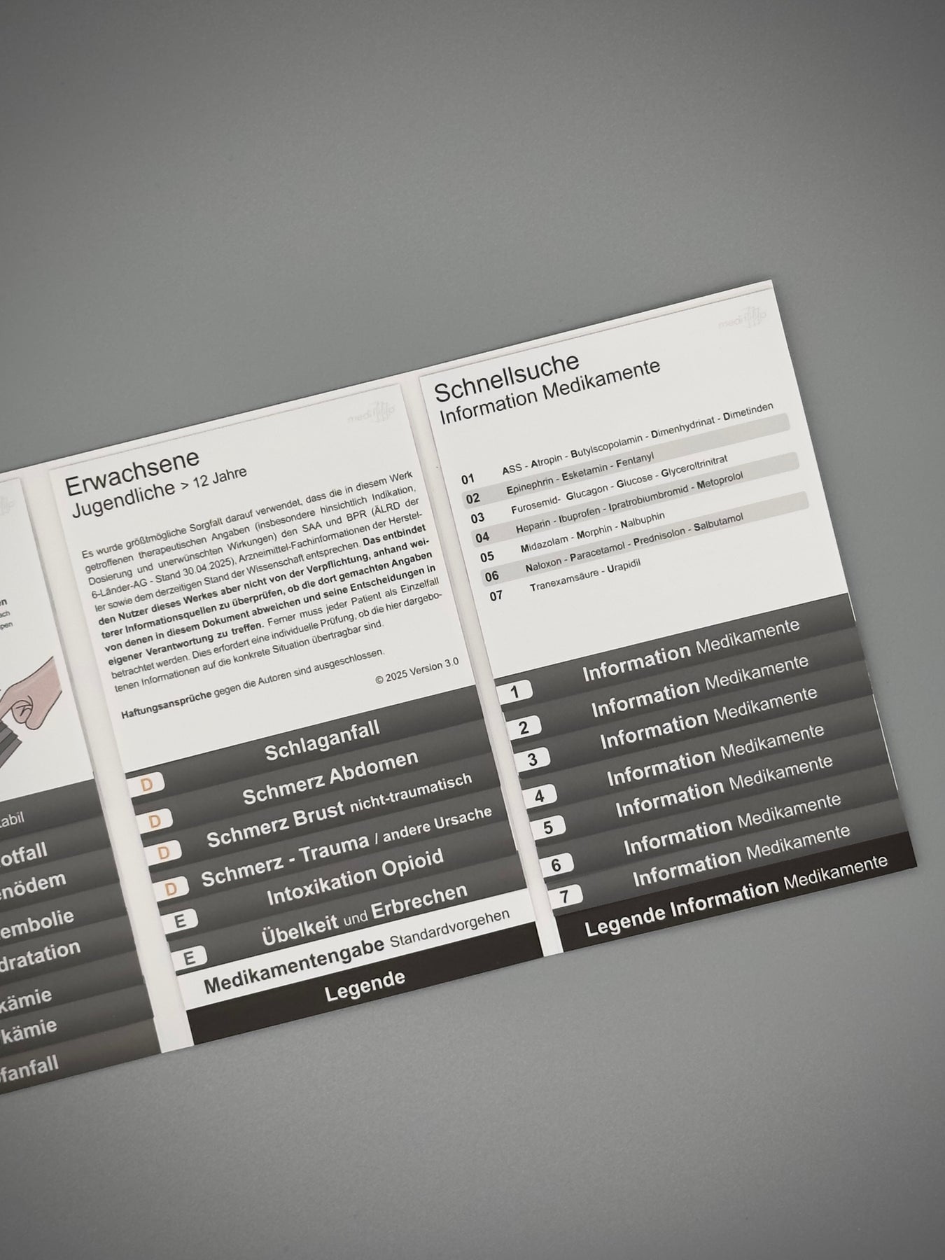 Der Mediflip Medikamente Notfallsanitäter SAA und BPR in der Version 3.0 bietet eine strukturierte, und praxisnahe Übersicht aller relevanten Medikamente für den rettungsdienstlichen Einsatz. Entwickelt für eine schnelle Orientierung, sichere Entscheidungsfindung und maximale Übersicht in zeitkritischen Situationen.